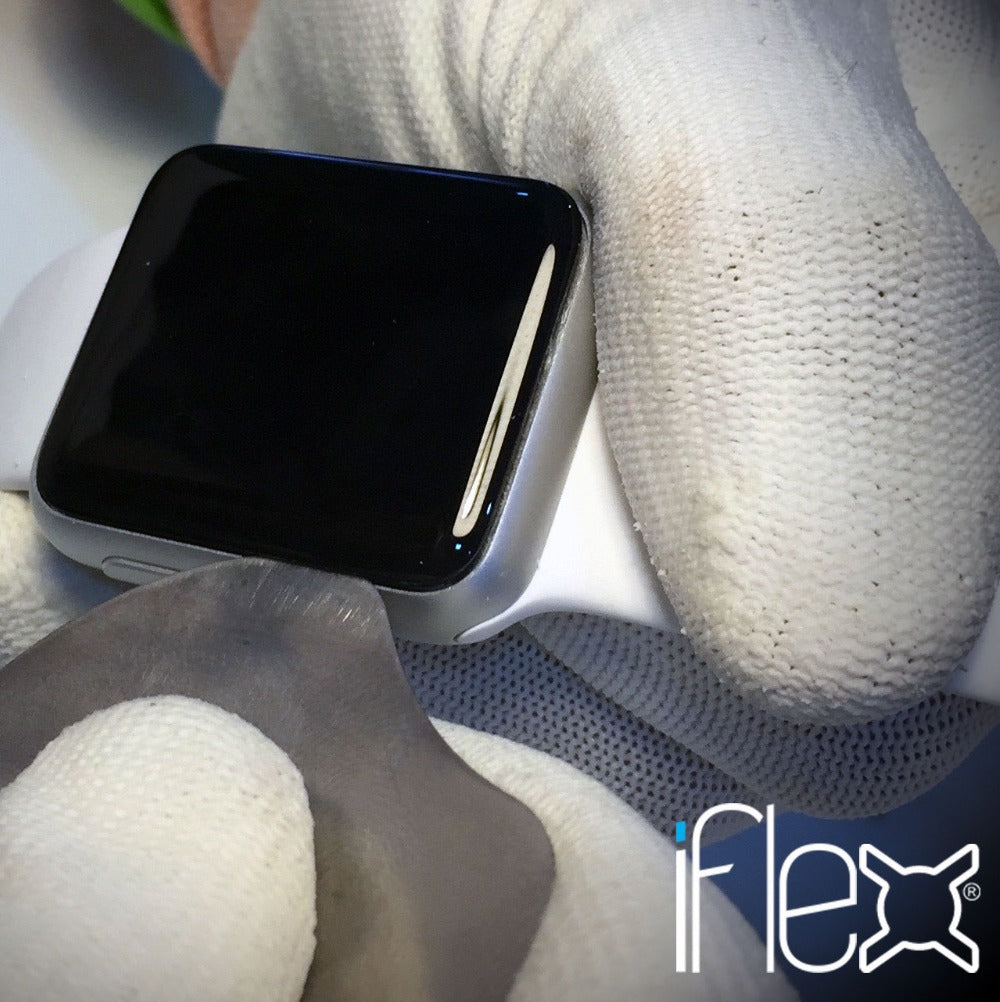 Use caution when using this tool. With its great strength comes the potential to scratch or otherwise damage components that might be better served with plastic tools such as the iGadget plastic card or iPlastix. We suggest using the iFlex to start the opening and swap to the plastic card/iPlastix for moving around the frame.