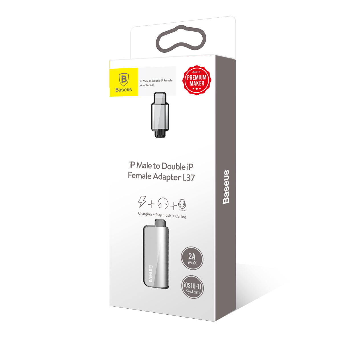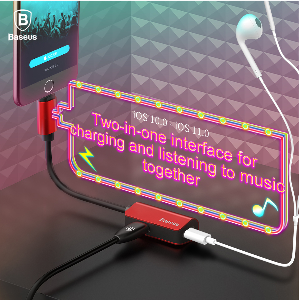 Baseus Male to 2x Female iPhone Headphone Adapter (L37) - Charge and Listen to Music at the Same time