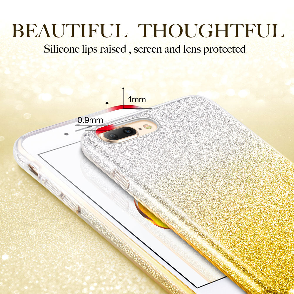 - 3 QUALITY LAYERS - The High Quality Flexible TPU provides a Soft, Flexible Outer Shell while the Robust PP material Strengthens the inside of the case. The Glitter Layer is wedged in between to keep it looking New all the time. This case will Protect your phone from Scratches and Scuffs while the Slim design will add no Bulk